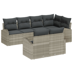 Ten 7-częściowy zestaw sof ogrodowych łączy styl, komfort i praktyczność. Pasuje na balkony, patio i do ogrodów. Wykonany z jakościowego jasnoszarego polirattanu i wygodnych poduszek poliestrowych, to idealny wybór do relaksu z rodziną i znajomymi na słońcu.